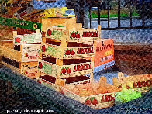 後ろで山積みになっていたかわいい木箱を写真に撮りました。