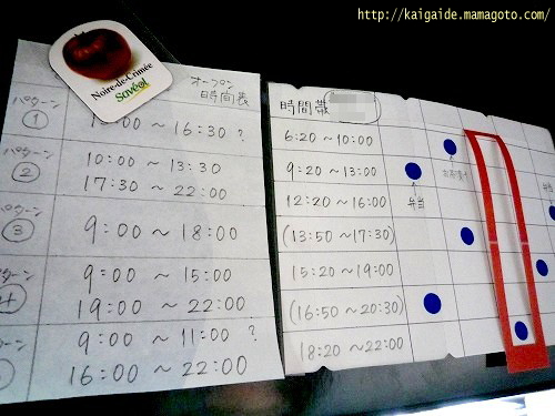 毎日、5つのグループの時間帯が変わります。