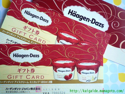 銀行でアンケートに答えてもらった、ハーゲンダッツのギフト券。