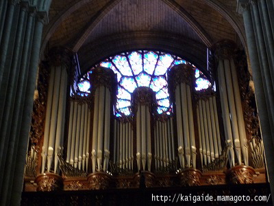 ノートルダム大聖堂の中にあるパイプオルガン。重低音が教会の中、響いています。