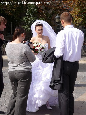 コンサートが終わり、外に出てみたら、新郎新婦が!