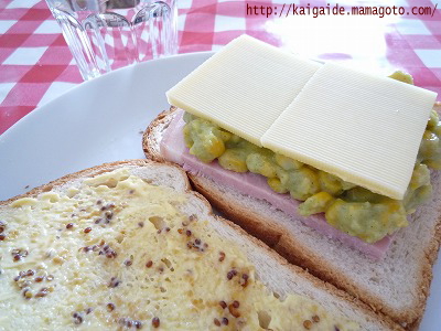 それにエメンタールチーズを挟んで、そうそうマスタードもあった!