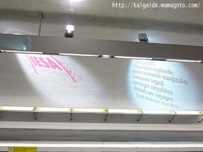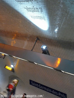 サン・ジェルマン・デ・プレ駅のホームには、壁にライトアップで