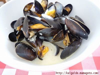 ムール貝を市場通りで買ってきました。今回は生クリームを入れて