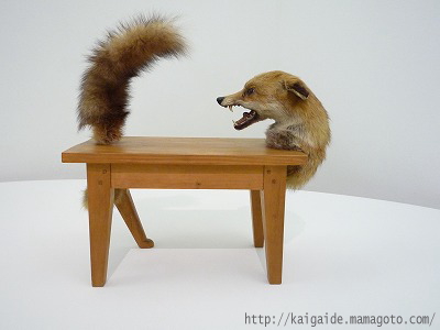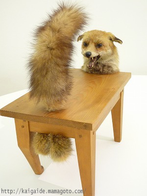 机に化け損なったのか、机の脚1つがオオカミの足になっています