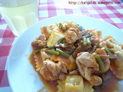 日本からカチャトーレ(鶏肉のワインビネガー煮)、トマトベースで
