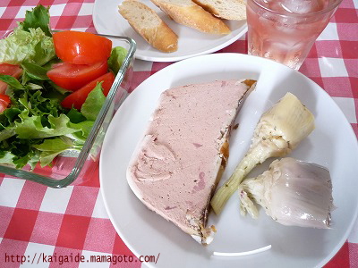 パテとアーティーチョーク(=朝鮮あざみ)で、ロゼワインと共に。