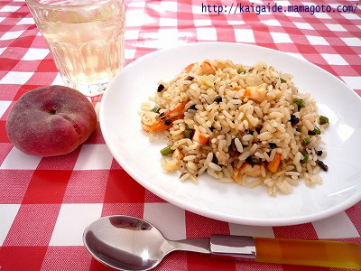 にんにくでピラフにしてみました。エビの頭も一緒に炒めてあります