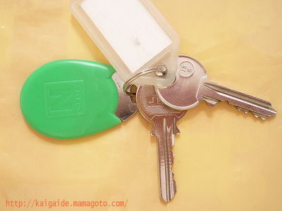 今回借りた物件のカギです。緑のが電子キーになっています。