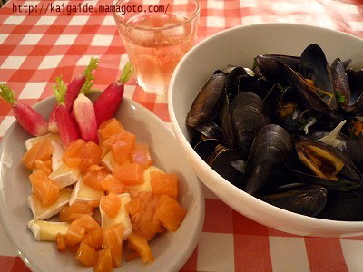 昨日の夜ゴハン余ったムール貝を頂きました。おかげで今日も豪華!