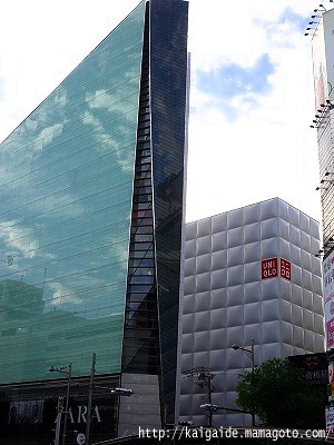 手前のシャープな建物はZARAのお店です。
