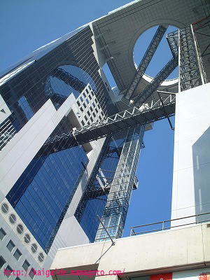 梅田スカイビルの40Fにある空中庭園展望台へには斜めに架かっている