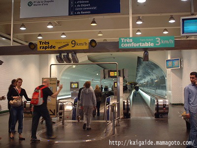 で、見つけた動く歩道。よく見ると3km/hコースと9km/hコースの2本あり、