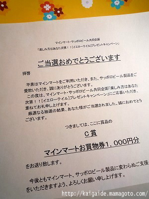 酒屋さんとの共同企画キャンペーンで、C賞:1,000円分の