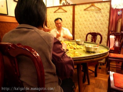 厨房かどこかでやらないの?円卓ひとつを客に使わせずに