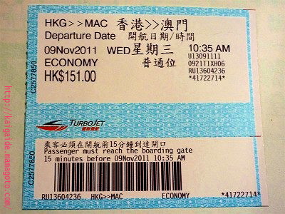 2011/11/09(水)3日め:香港からマカオへ移動ですっ!