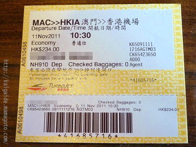 でも!マカオ行きと香港行きでは、やっぱり値段がやや違います。